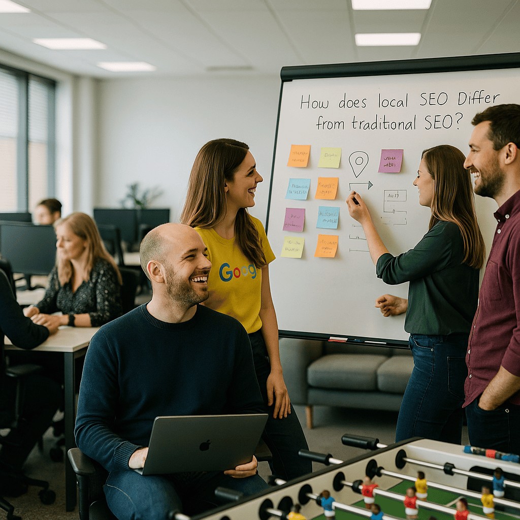 Traditional SEO centres on improving a website’s ranking through optimising content, backlinks, and technical elements across general search terms. It aims to attract visitors from across a region, country, or even globally. Local SEO, meanwhile, prioritises location-specific keywords, Google My Business optimisation, and local citations to appear prominently in local search results and map packs.